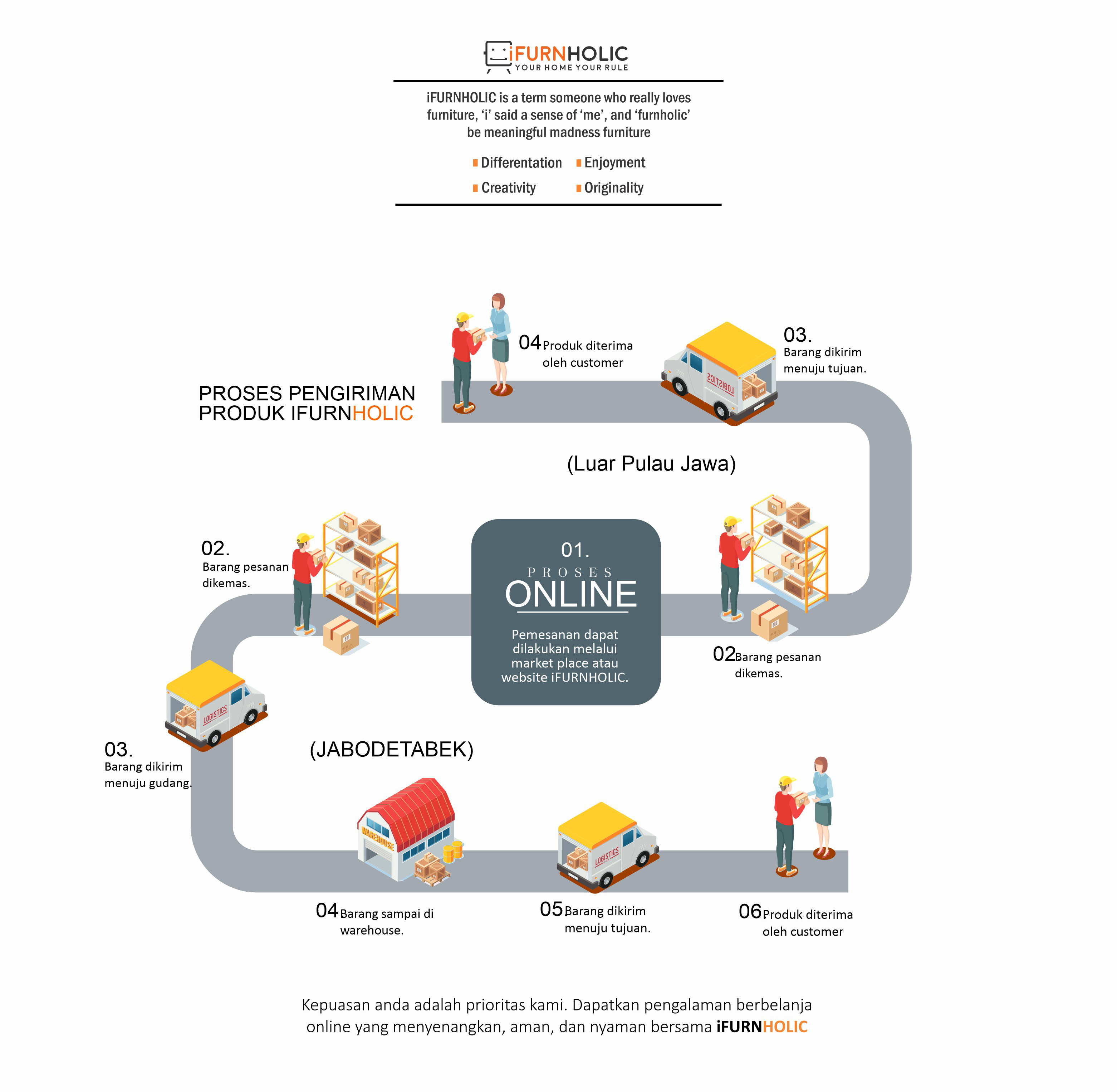 1. Produk dikirim belum dirakit disertai panduan pemasangannya (Minor Asssembly required).