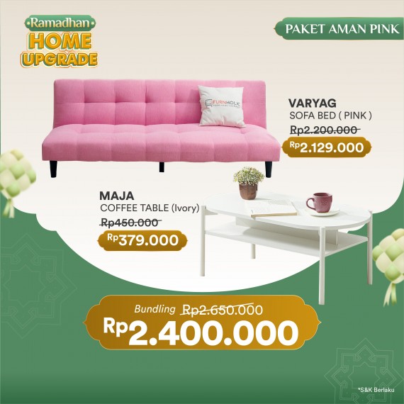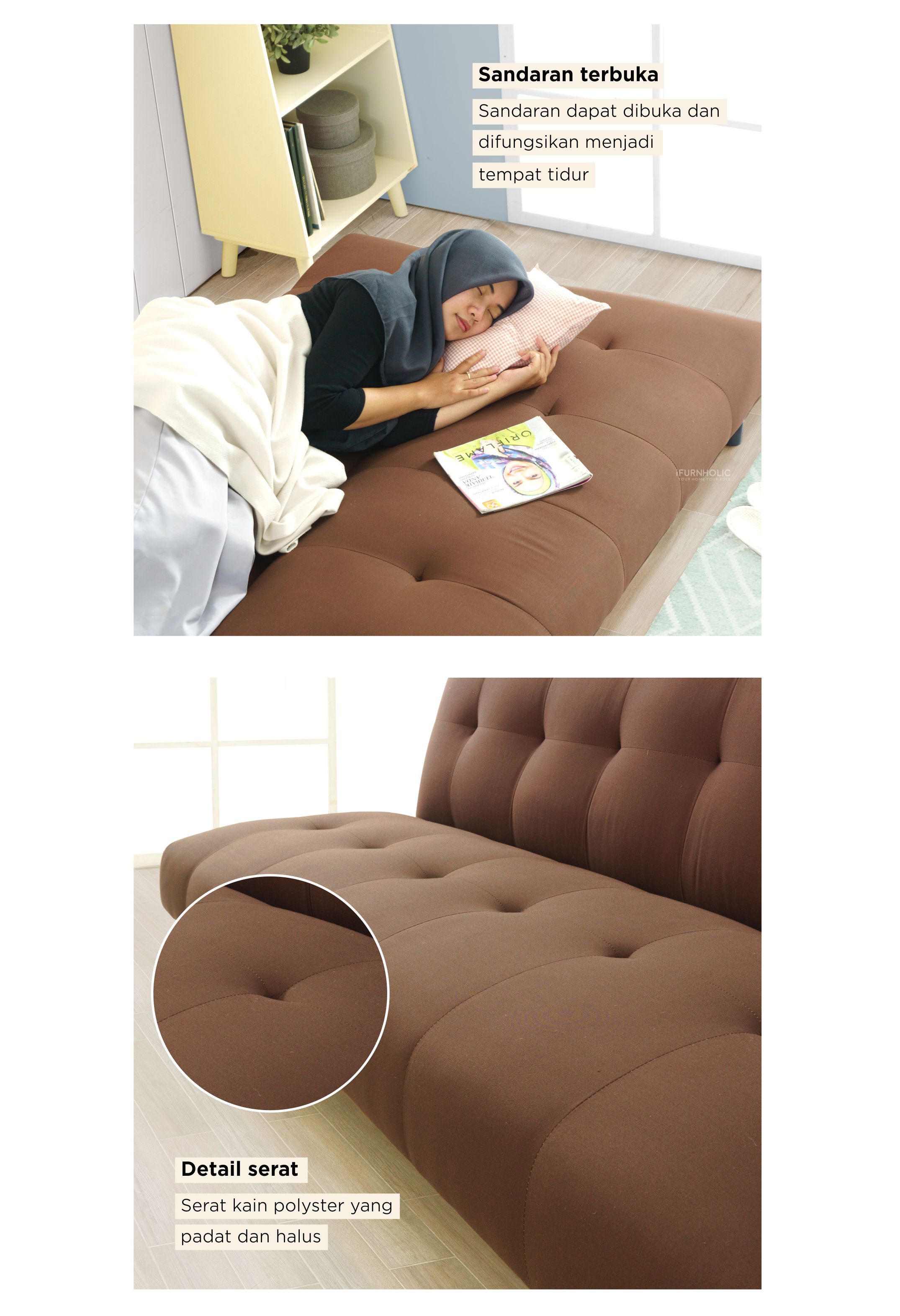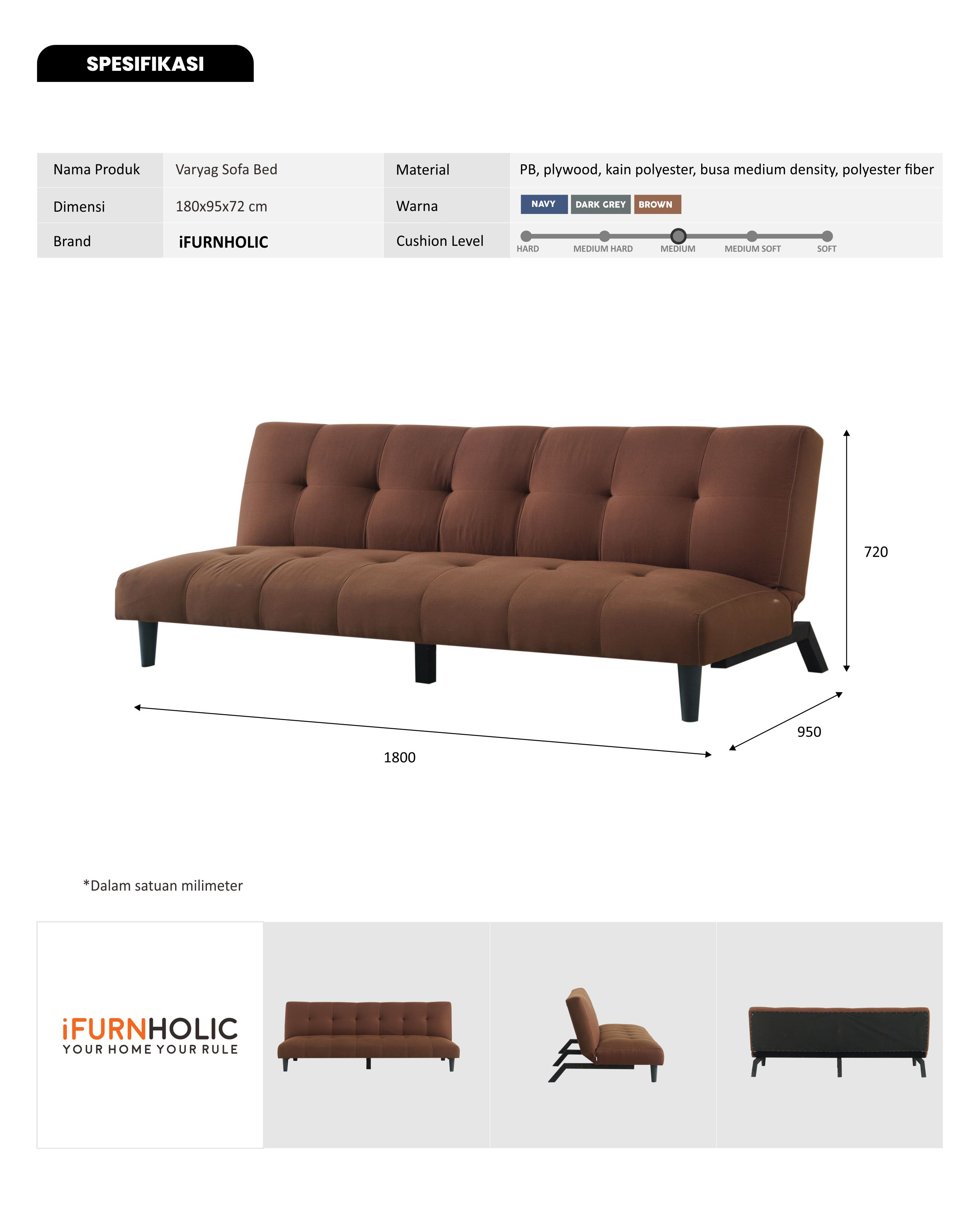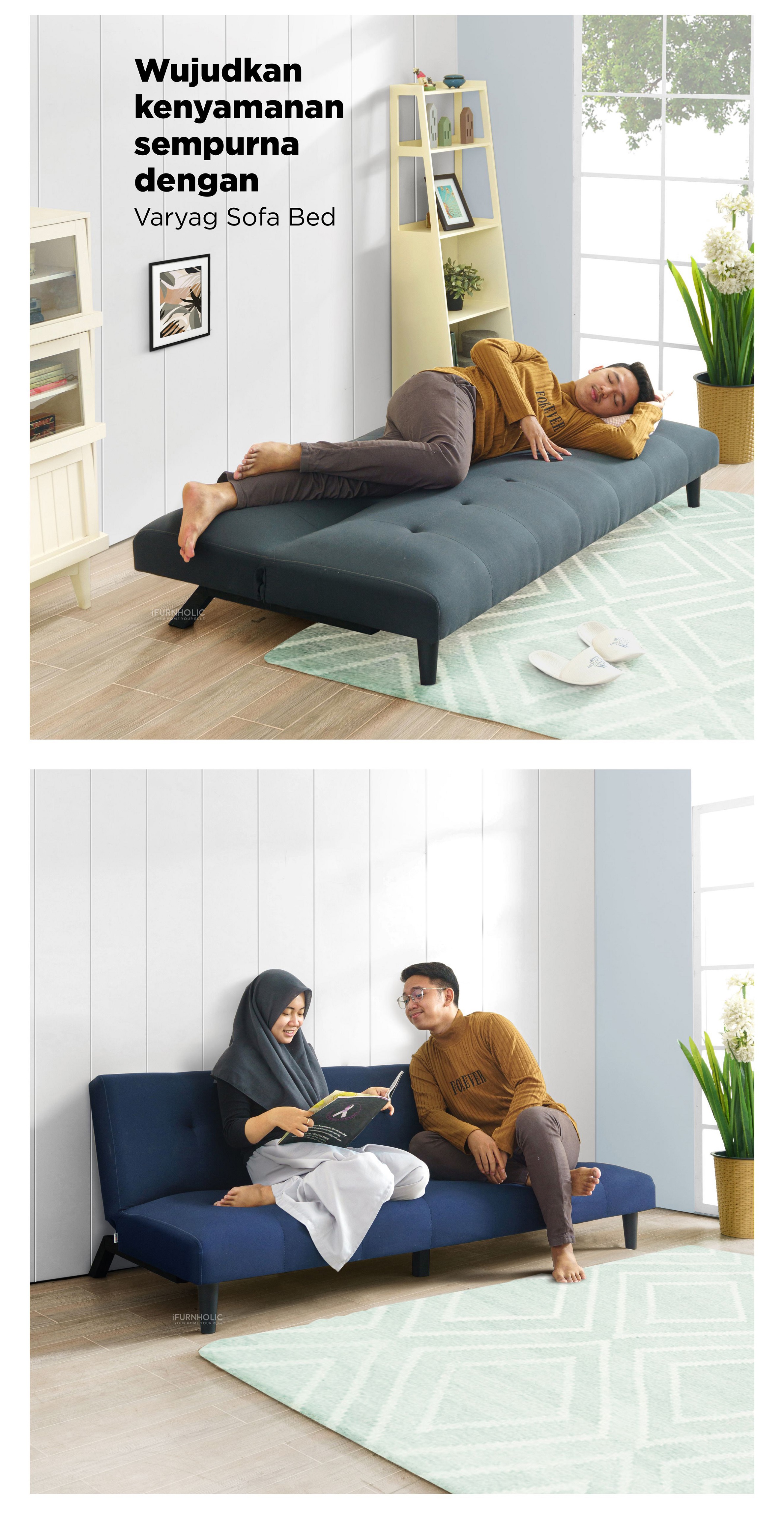 - Varyag Sofa Bed Tosca : sofa multifungsi dengan desain manis, nyaman untuk bersantai, dan bisa dilipat menjadi tempat tidur praktis saat dibutuhkan.