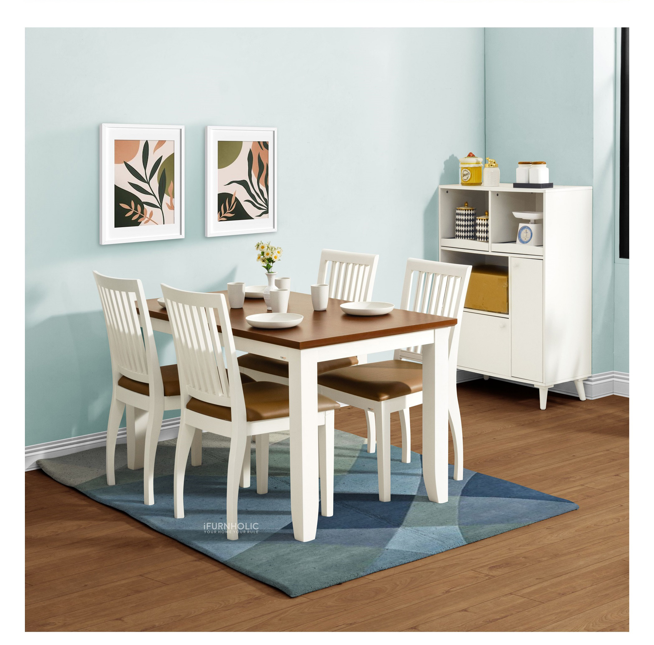 Kombinasi set meja makan dan lemari dapur minimalis ini bukan hanya praktis, tapi juga mempercantik ruang makan atau ruang keluarga Anda.