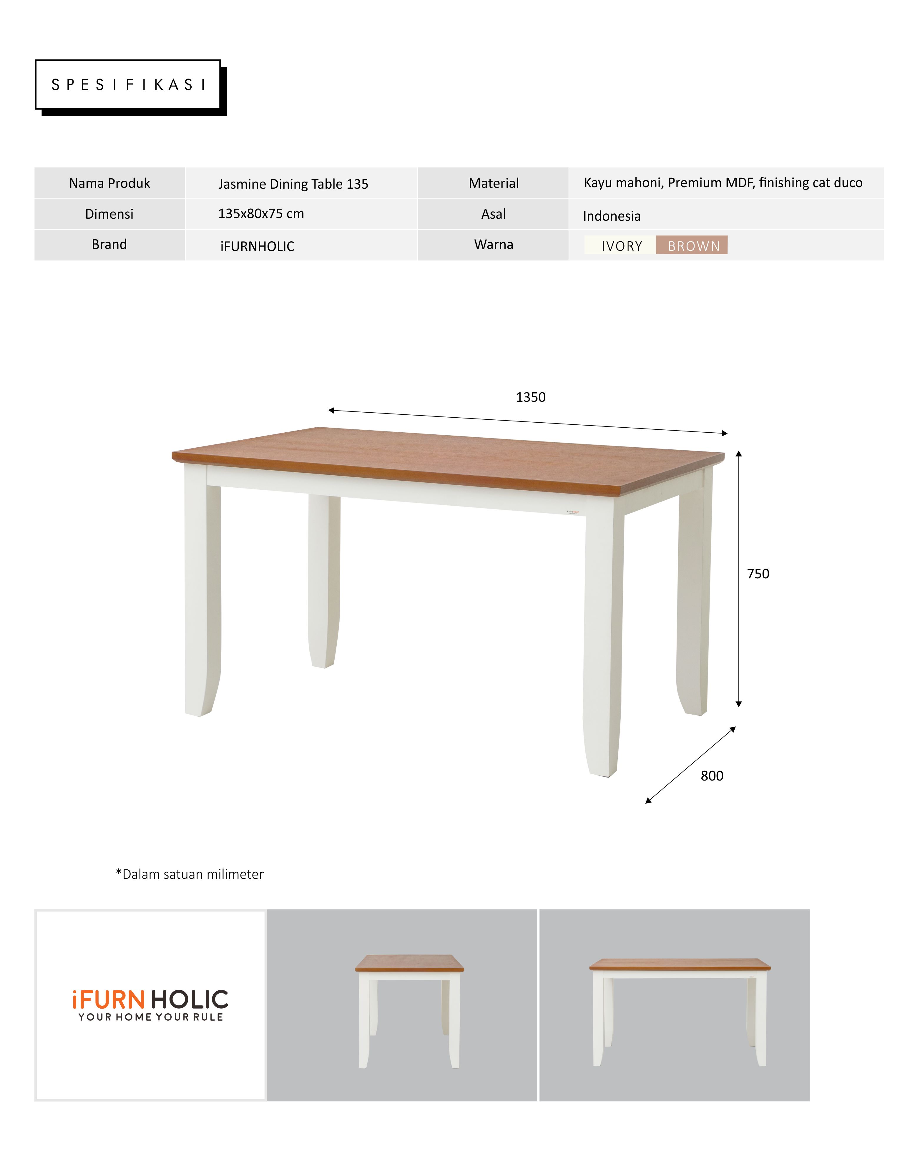 1 Unit Jasime Dining Table 135 (Ivory - Dark Brown)