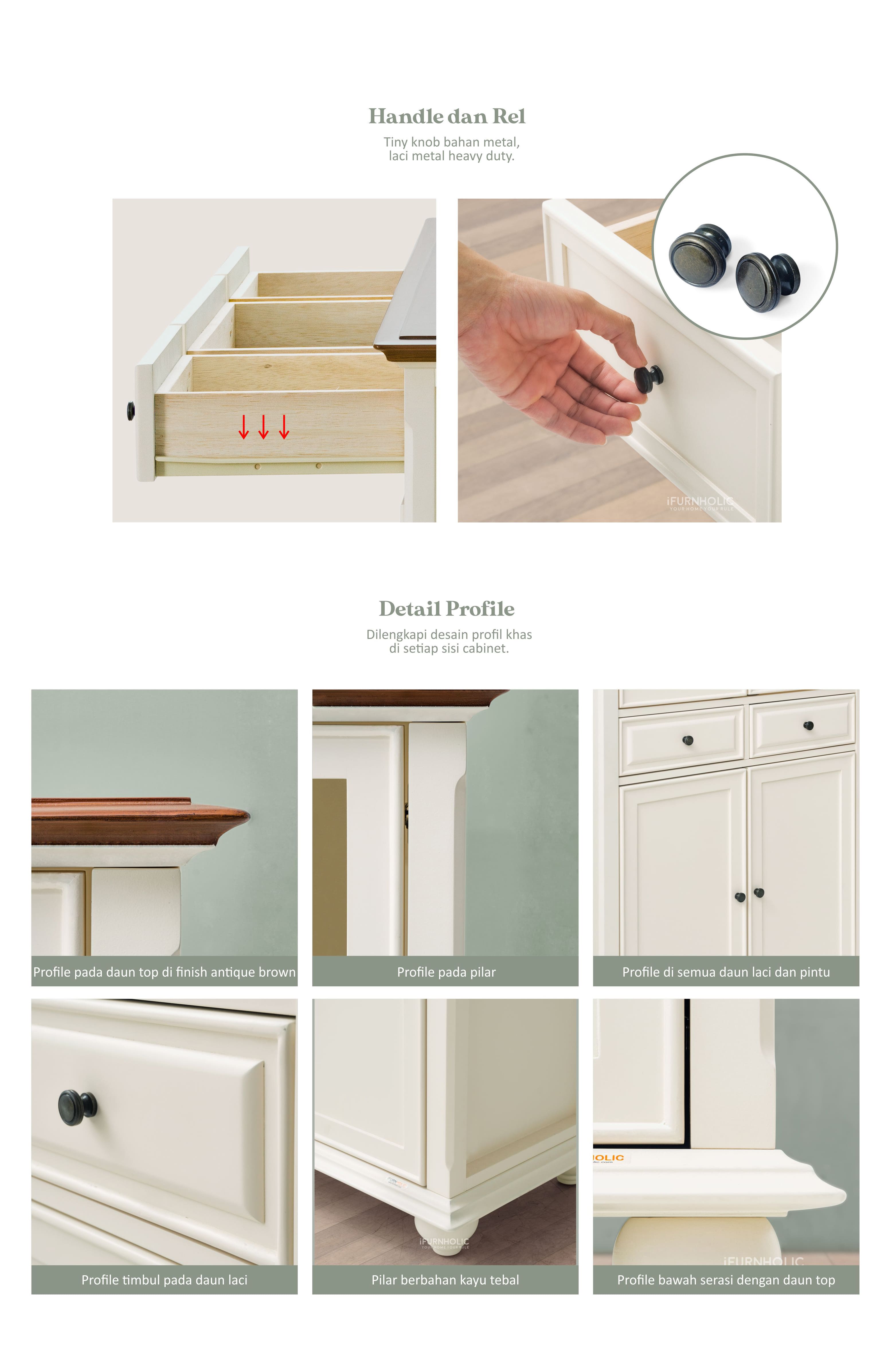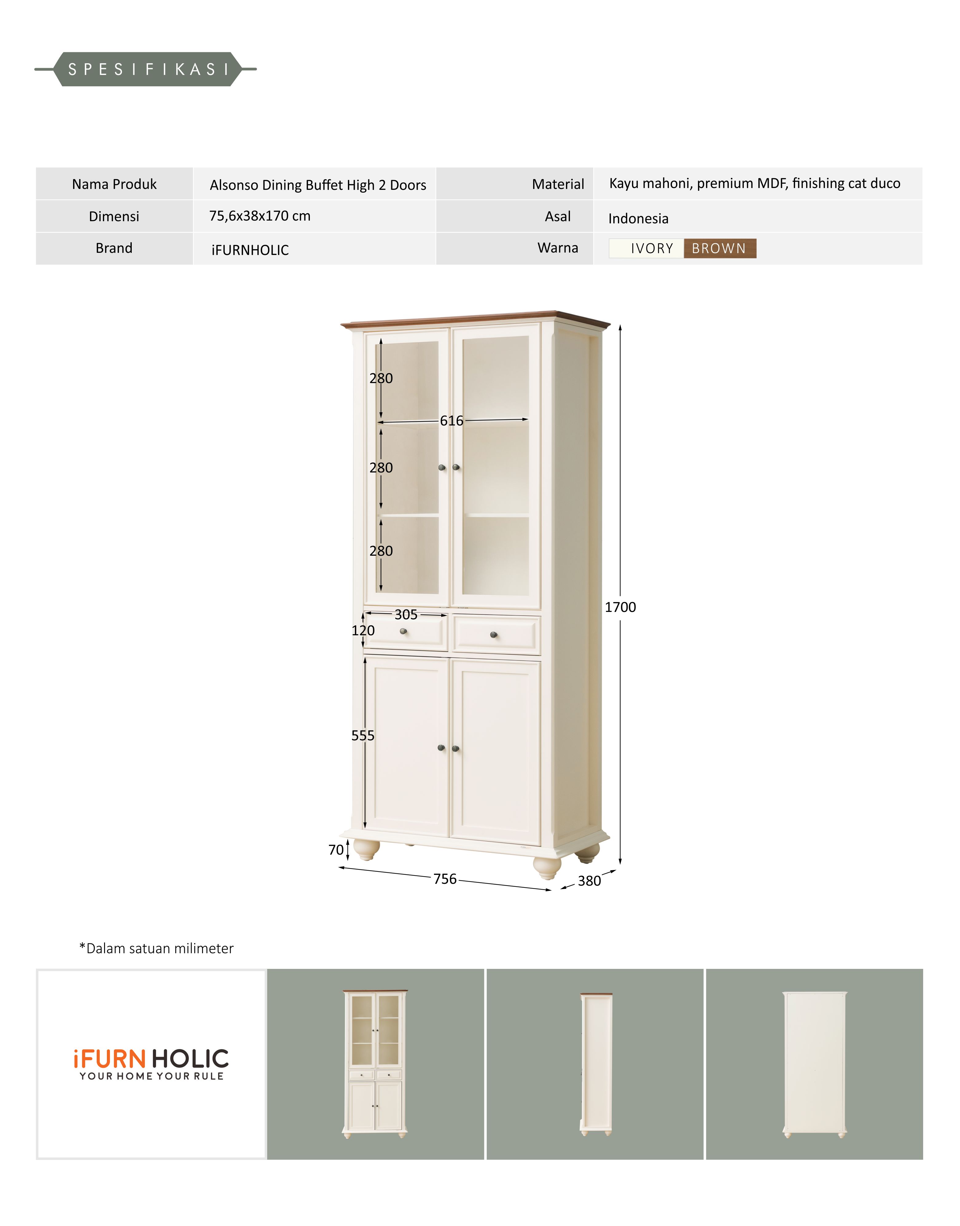 1 Unit Alfonso Dining Buffet High 2 Door (Ivory - Brown)