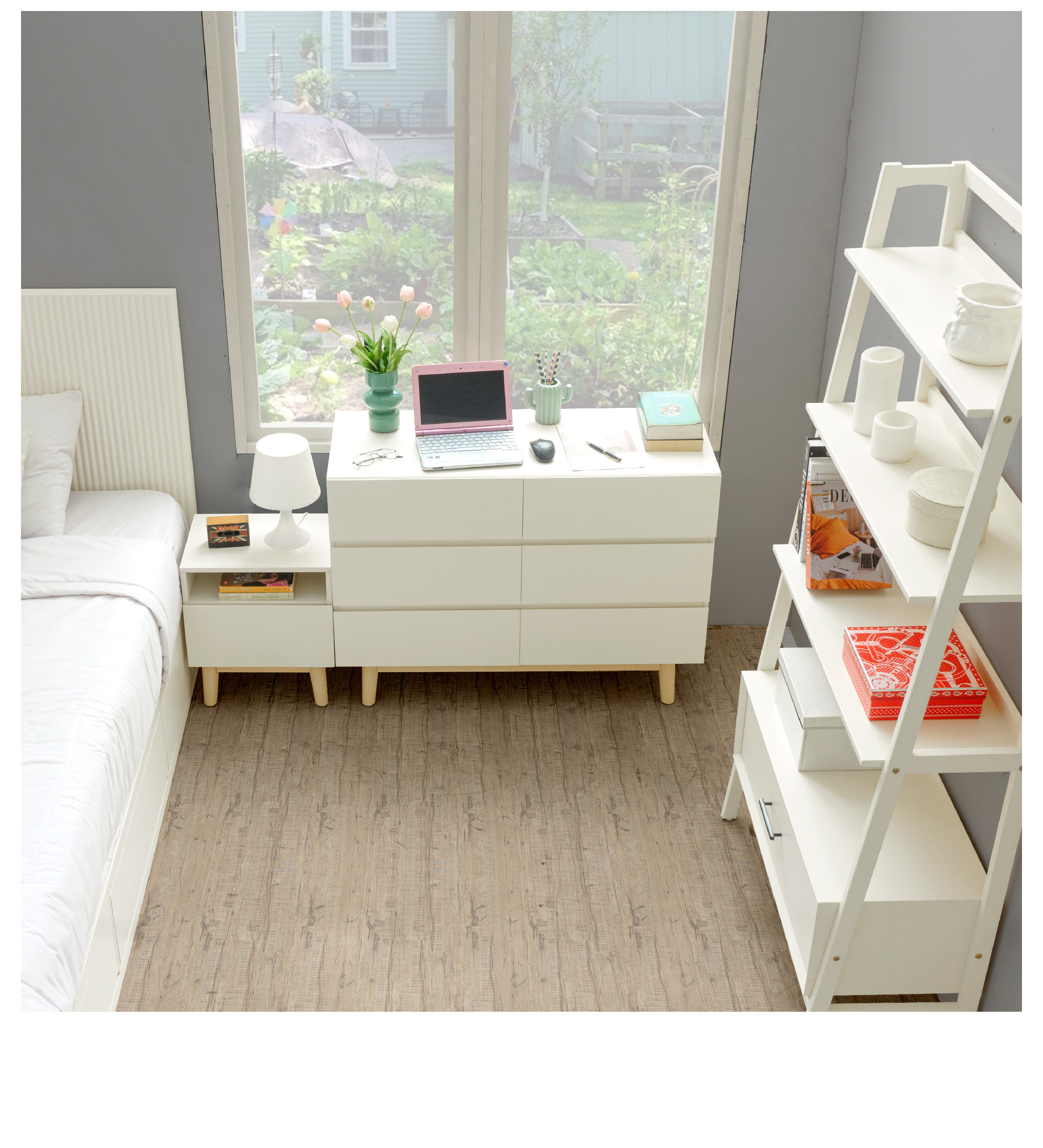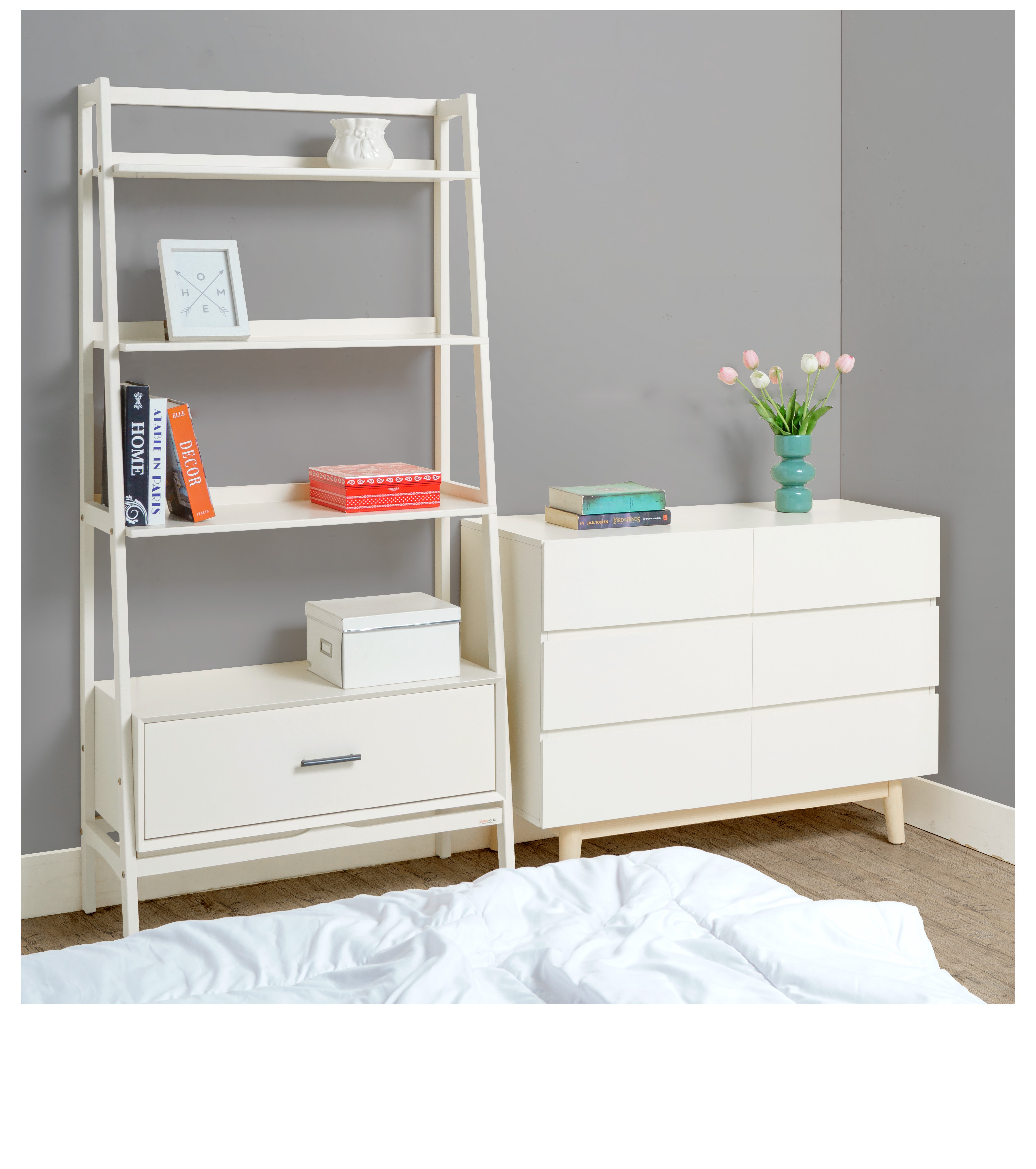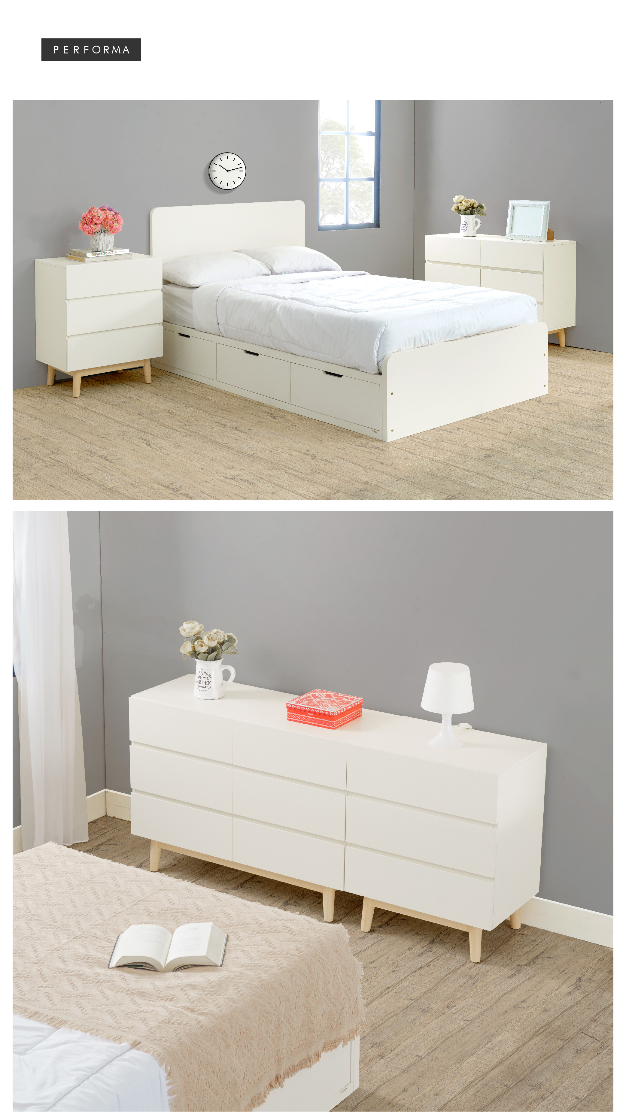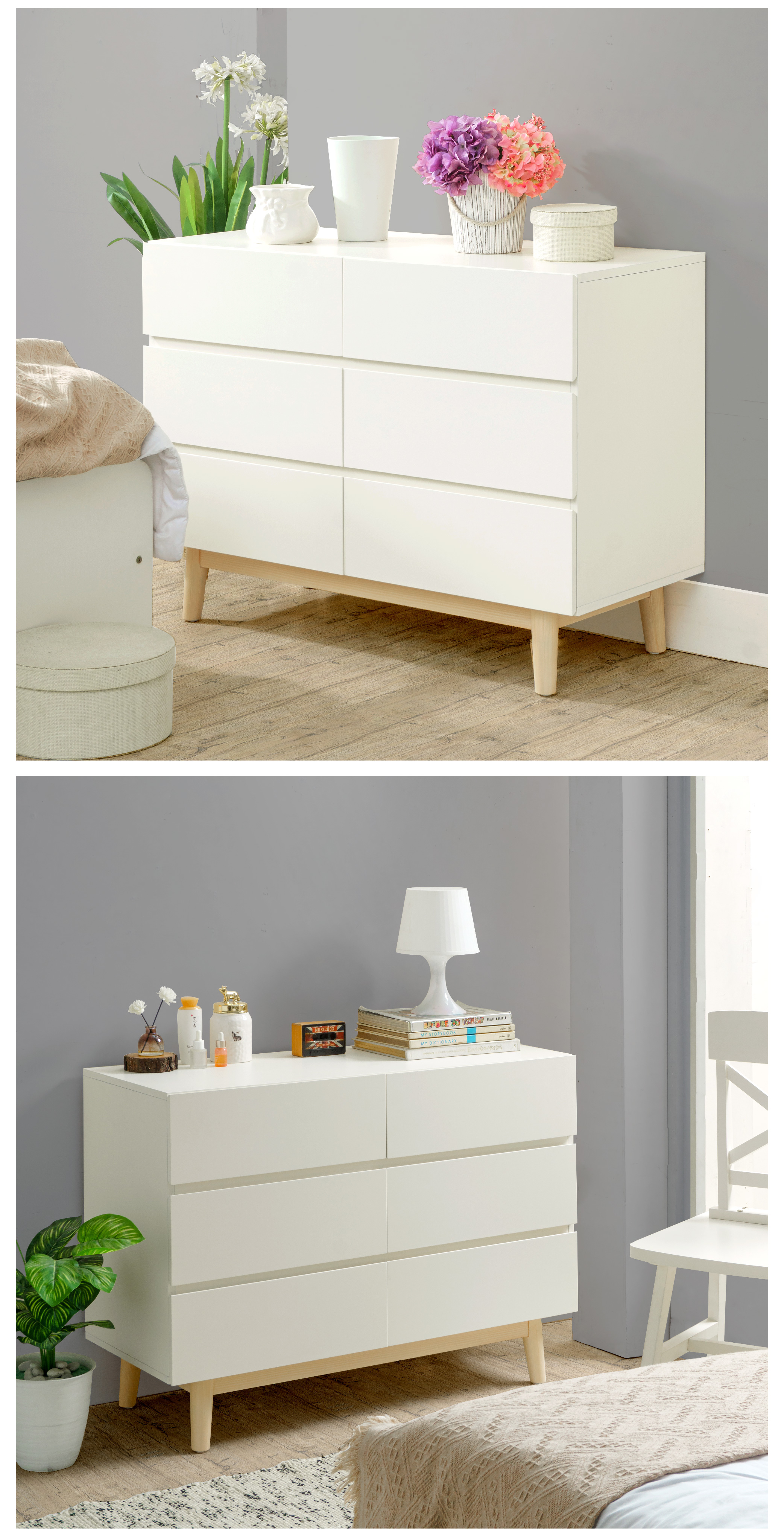 WARNA: Ivory kombinasi Natural UKURAN (cm) Panjang 100 | Lebar 40 | Tinggi 73 Tinggi tiap laci 18 Tinggi kaki 15 BAHAN Bahan MDF, kayu Mahoni, finish duco rapi