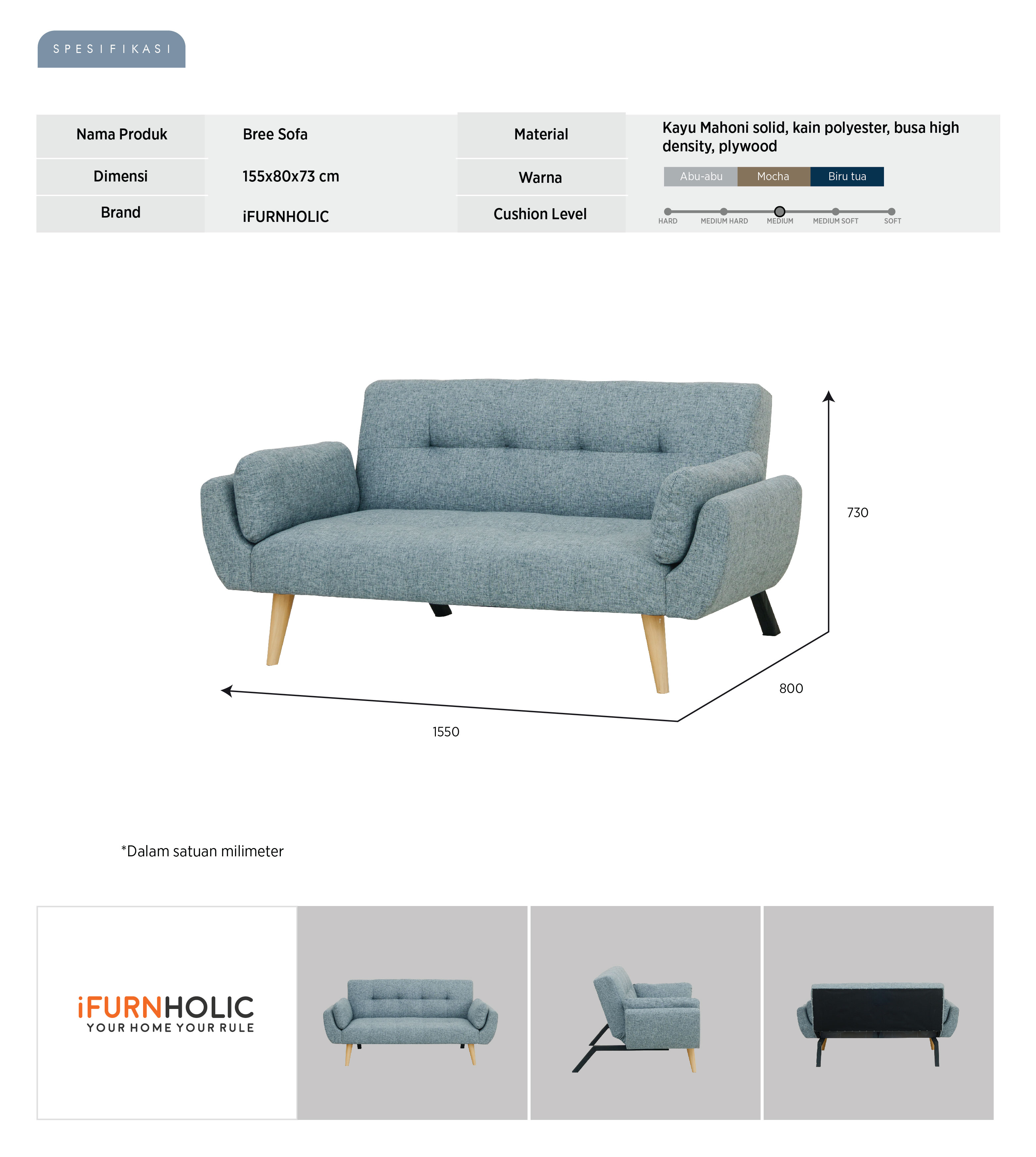 Panjang 155 | Lebar 80 | Tinggi 73