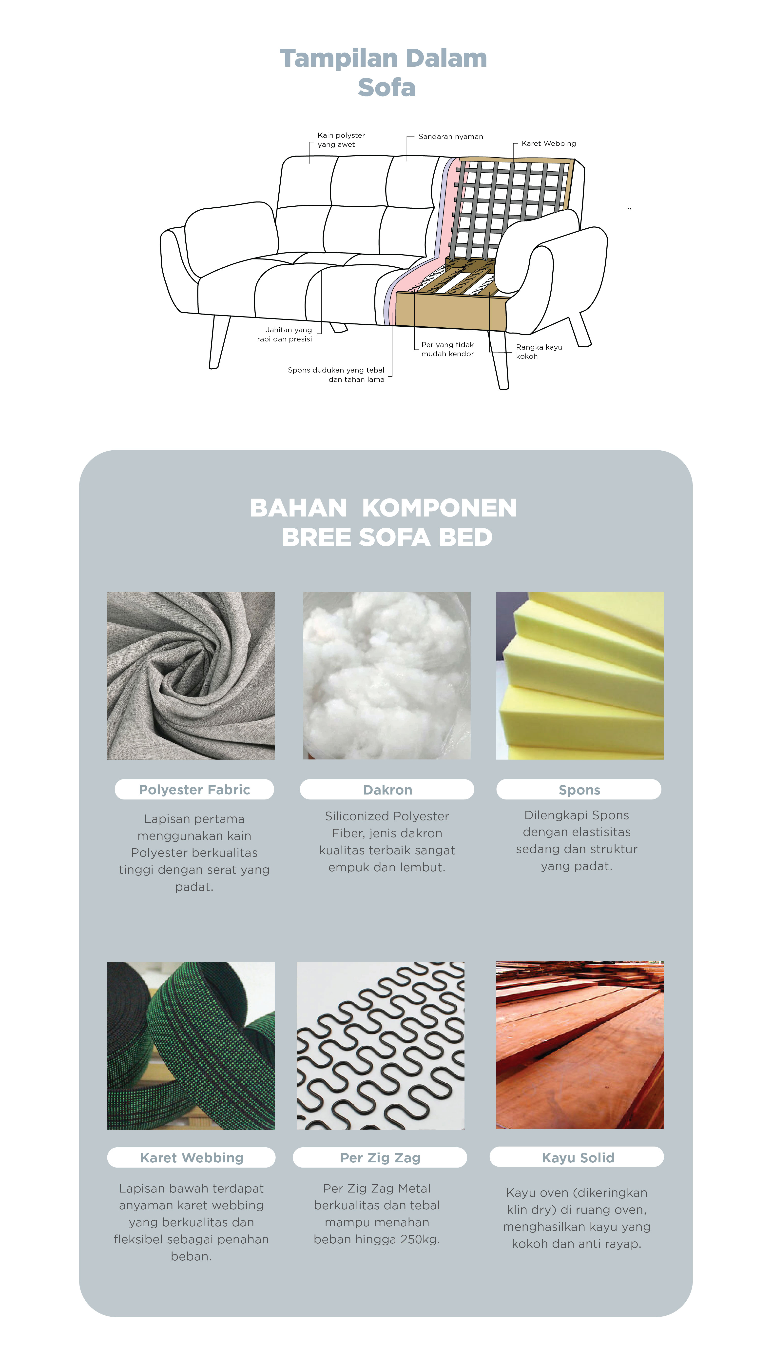 • Rangka kayu mahoni oven, plywood dan particle board.
