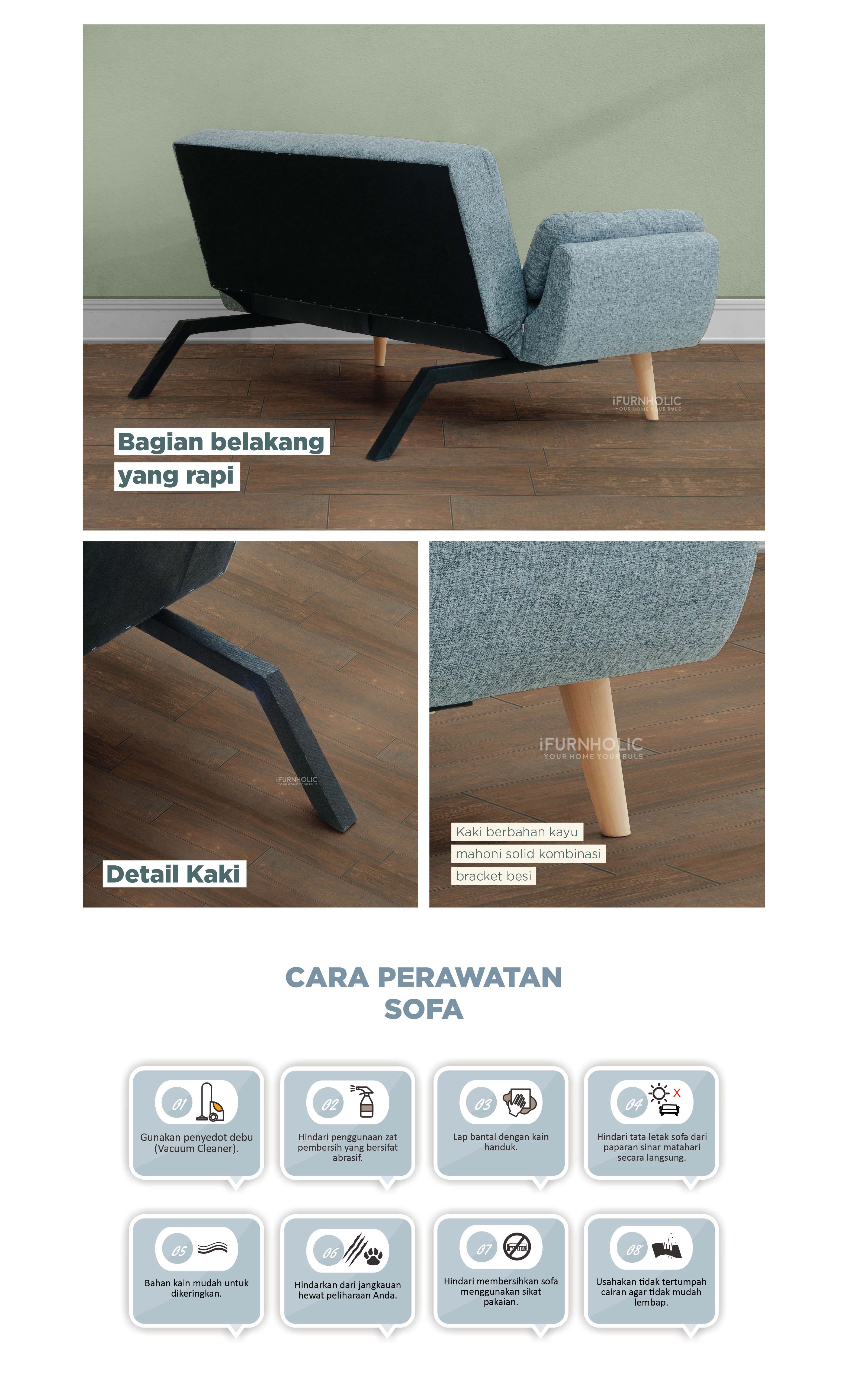 • Kaki depan solid mahoni dgn bracket besi, kaki belakang mahoni oven.