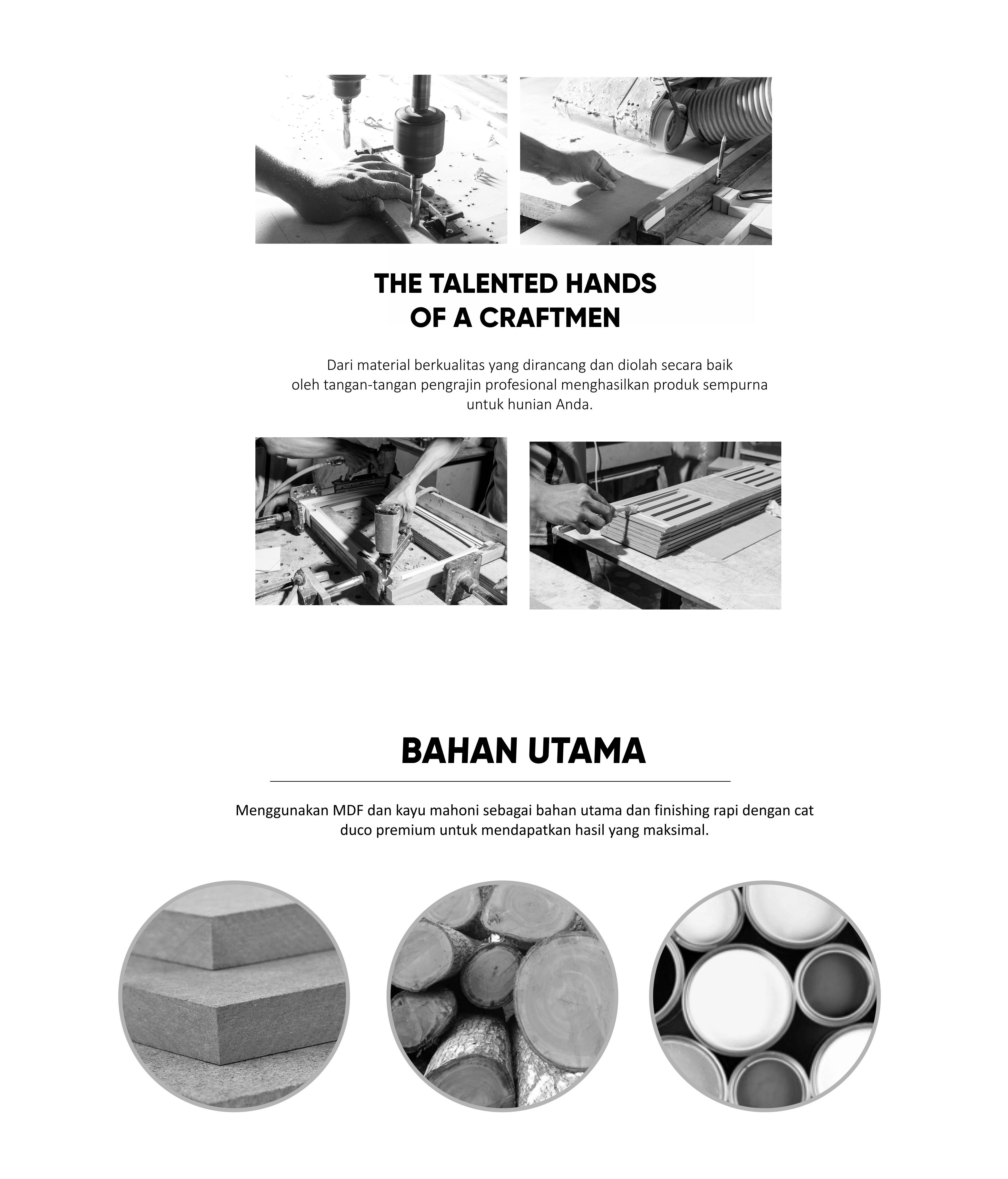 Bahan MDF, kayu Mahoni, finish duco rapi